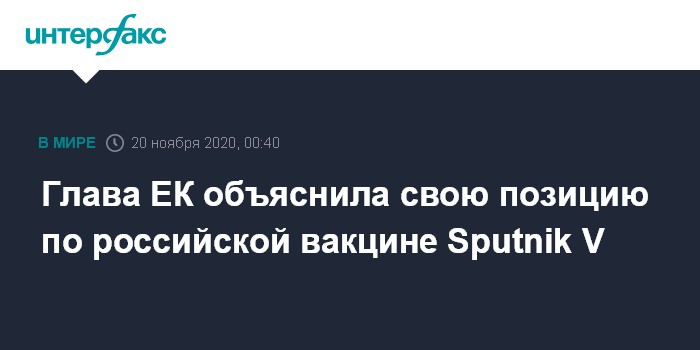 "Нет, это не было предметом дискуссии этой видеоконференции. В целом же мы знаем, что вакцинация - это вопрос безопасности и доверия. И эта безопасность, и это доверие, они будут, когда есть прозрачность по данным, касающимся разработки вакцин или хода клинических испытаний", - сказала фон дер Ляйен вечером в четверг на пресс-конференции в Брюсселе по итогам состоявшегося виртуального саммита Евросоюза, главным вопросом которого была борьба против пандемии COVID-19.