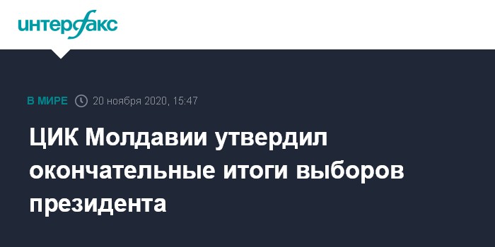 Москва. 20 ноября. INTERFAX.RU - Центральная избирательная комиссия Молдавии на заседании в пятницу утвердила окончательные результаты выборов президента, победу на которых по итогам второго тура в воскресенье одержала Майя Санду.