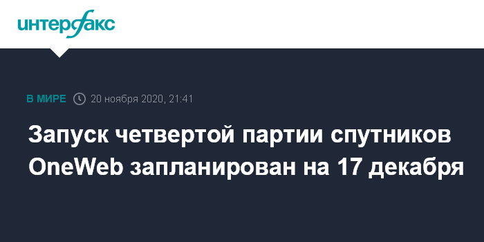 Запуск четвертой партии спутников OneWeb запланирован на 17 декабря