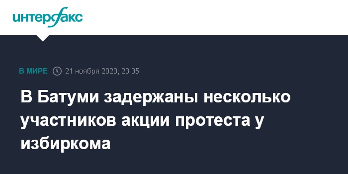 Москва. 21 ноября. INTERFAX.RU - Полиция задержала в Батуми нескольких участников оппозиционной организации "Альтернатива", устроивших у здания окружной избирательной комиссии в субботу вечером так называемый "коридор позора", препятствуя доставке избирательных урн с бюллетенями.