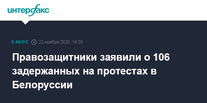 Москва. 22 ноября. INTERFAX.RU - По данным не зарегистрированного в Белоруссии правозащитного центра "Весна", на несанкционированных акциях протеста в республике задержано более ста человек.