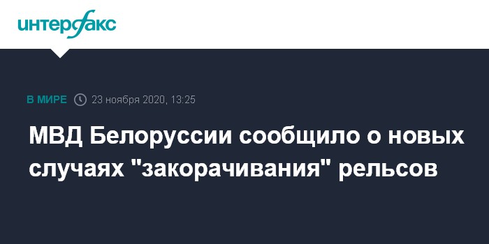 18 ноября МВД заявило о всплеске случаев повреждения и приведения в негодность железнодорожных путей на территории республики. За последние два месяца ведомство зарегистрировало более 120 фактов повреждения путей и возбудило больше 50 уголовных дел. Чаще всего эти случаи фиксируются в Минской области.