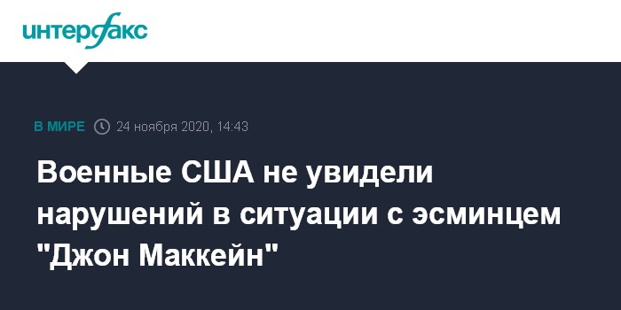 "24 ноября корабль "Джон Маккейн" воспользовался правом на свободную навигацию близ залива Петра Великого в Японском море. Эта операция по обеспечению свободы навигации (FONOP) позволила поставить под сомнение чрезмерные российские территориальные претензии. Она поддержала права, свободы и возможность законно использовать морское пространство в соответствии с положениями международного права", - говорится в заявлении.