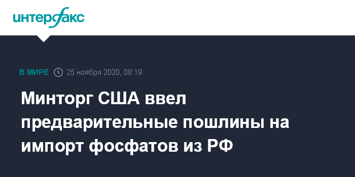 Минторг США ввел предварительные пошлины на импорт фосфатов из РФ