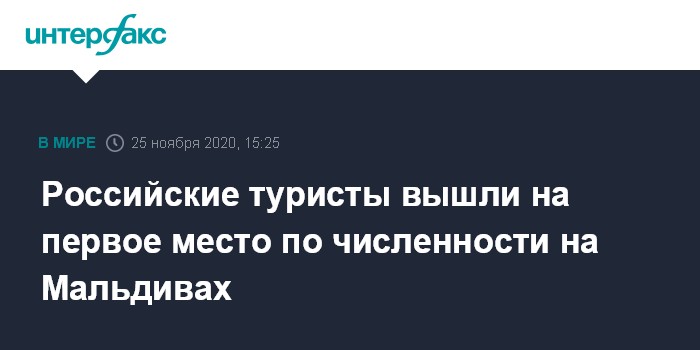 Москва. 25 ноября. INTERFAX.RU - Туристы из России вышли на первое место по численности на Мальдивах с момента открытия страной границ 15 июля, сообщает портал Raajje со ссылкой на статистику Минтуризма Мальдив.