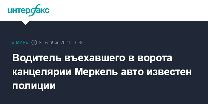 Москва. 25 ноября. INTERFAX.RU - Полиция осведомлена о личности водителя автомобиля, въехавшего в ворота канцелярии Ангелы Меркель, заявил официальный представитель МВД ФРГ Стив Альтер.