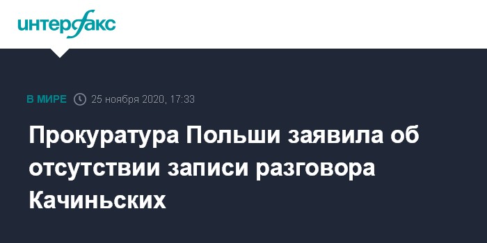 Москва. 25 ноября. INTERFAX.RU - Польская прокуратура не располагает никакими записями разговора бывшего президента Польши Леха Качиньского с братом Ярославом, который якобы состоялся по спутниковой связи незадолго до крушения самолета, сообщает в среду польский информационный портал Onet.pl.