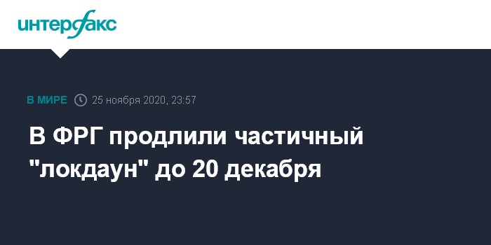 Москва. 25 ноября. INTERFAX.RU - Власти федеральных земель Германии в консультациях с канцлером Ангелой Меркель приняли решение продлить и ужесточить меры общественных ограничений, принятые для подавления пандемии коронавируса, сообщила канцлер в среду по итогам совещания.
