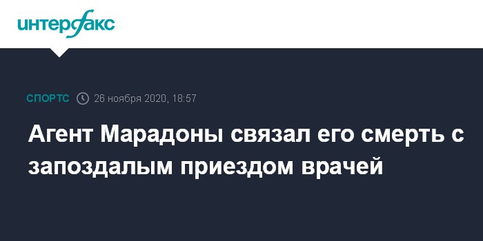 Москва. 26 ноября. INTERFAX.RU - Матиас Мориа, агент Диего Марадоны, связывает его смерть со слишком поздним прибытием скорой помощи на вызов, сообщает в четверг аргентинский телеканал TN24.