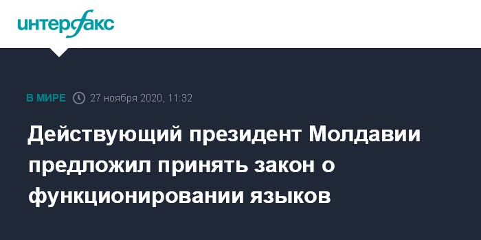 Москва. 27 ноября. INTERFAX.RU - Действующий президент Молдавии Игорь Додон предлагает принять новый закон о функционировании языков. Об этом он заявил в пятницу в ходе передачи "Президент Игорь Додон отвечает" в прямом эфире в социальных сетях.