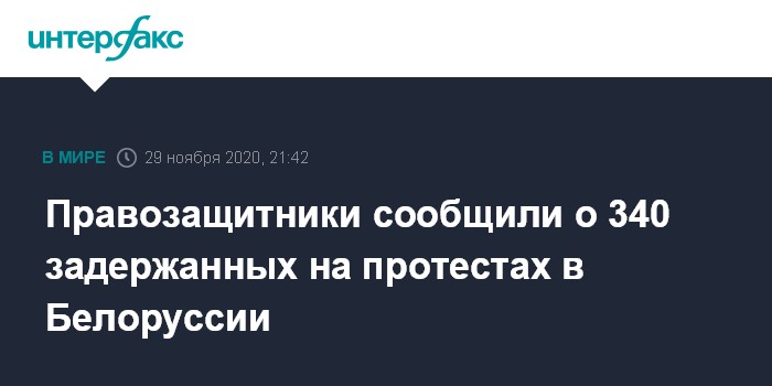 Москва. 29 ноября. INTERFAX.RU - По данным незарегистрированного в Белоруссии правозащитного центра "Весна", на несанкционированных акциях протеста в республике в воскресенье задержано более 300 человек.