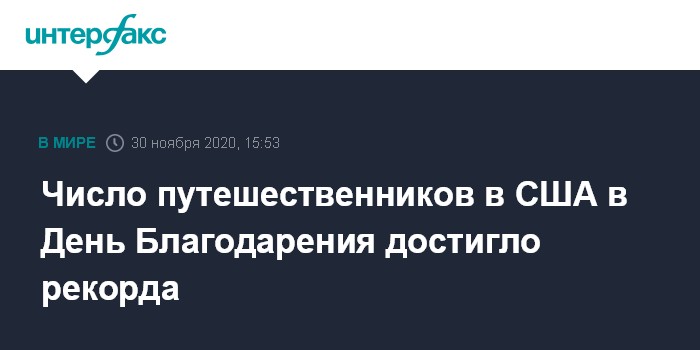 Почти 50 млн человек, по предварительным оценкам, отправились в путешествие во время традиционных каникул по случаю Дня благодарения (в этом году отмечался 26 ноября), несмотря на ужесточение ограничительных мер и предупреждения органов здравоохранения, свидетельствуют данные американской организации AAA, занимающейся исследованиями и консалтингом в области туризма.