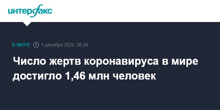 На утро вторника во всем мире число умерших от связанных с COVID-19 заболеваний выросло до 1 467 673 против 1 459 243 на утро понедельника, выздоровели более 40,5 млн.