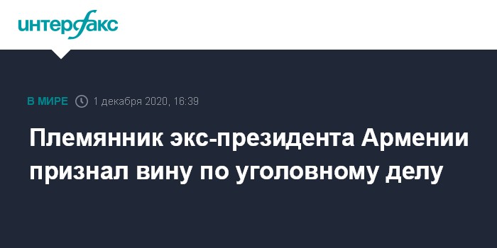 Москва. 1 декабря. INTERFAX.RU - Племянник бывшего президента Армении Сержа Саргсяна Нарек Саргсян полностью признал предъявленные ему обвинения в незаконном хранении оружия и обороте наркотических средств.