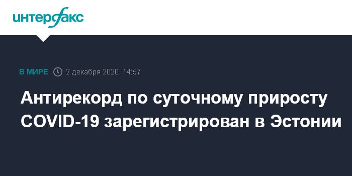 До этого наибольший показатель заболеваемости в Эстонии был зарегистрирован 26 ноября - 415 инфицированных с COVID-19. В процентном отношении это также наивысший показатель - в среду 8,1% тестов показали положительный результат, до этого было 5-6% в сутки. Кумулятивная заболеваемость за последние 14 дней составила 355,09 случаев на 100 тыс. человек.