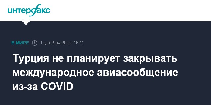 Турция не планирует закрывать международное авиасообщение из-за COVID