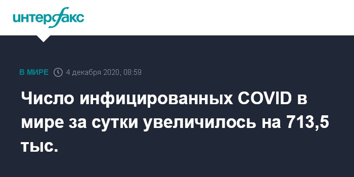 Число инфицированных COVID в мире за сутки увеличилось на 713,5 тыс.