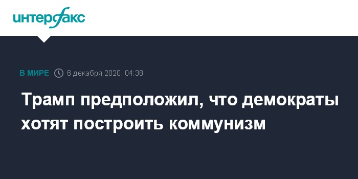 Москва. 6 декабря. INTERFAX.RU - Демократическая партия США в случае прихода к власти будет пытаться построить в стране сначала социализм, а затем – коммунизм, предположил американский президент Дональд Трамп.