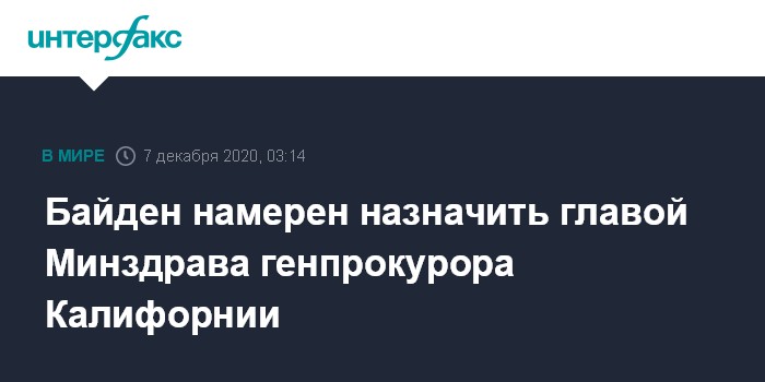 Байден намерен назначить главой Минздрава генпрокурора Калифорнии