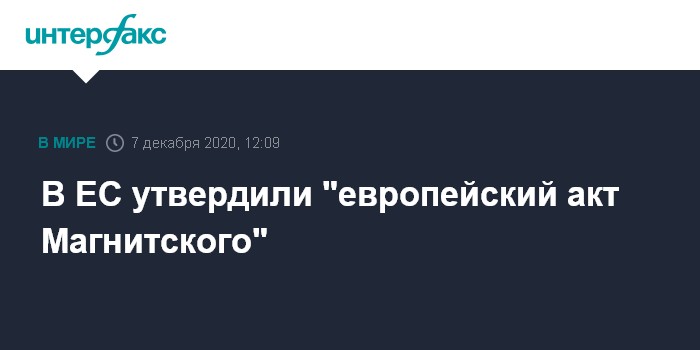 Это законодательство готовилось давно и во многих СМИ получило условное название "европейского акта Магнитского" по аналогии с законом США. Но в ЕС отмечают, что практика законотворчества Евросоюза не предполагает присвоения законодательным актам конкретных имен.