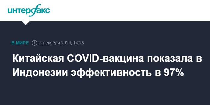 Москва. 8 декабря. INTERFAX.RU - Вакцина китайской компании Sinovac показала до 97% эффективности на испытаниях в Индонезии, сообщает газета South China Morning Post.