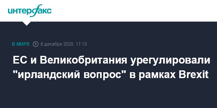 "Важно обеспечить полное действие соглашения о выходе (Великобритании из ЕС), в частности, протокола по Ирландии и Северной Ирландии, в конце переходного периода, то есть с 1 января 2021 года. Протокол защищает соглашение Страстной пятницы (Белфастское) во всех его аспектах, поддерживая мир, стабильность и процветание на острове Ирландия", - отметили Шефчович и Гоув.