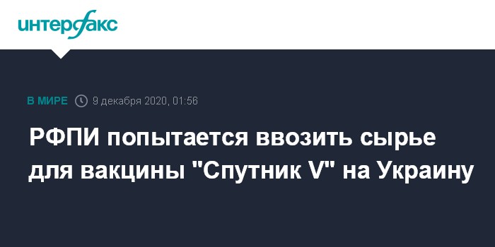 Москва. 8 декабря. INTERFAX.RU - Российский фонд прямых инвестиций заявил, что подаст заявку на завоз сырья для производства российской вакцины "Спутник V" на территории Украины в ближайшее время.