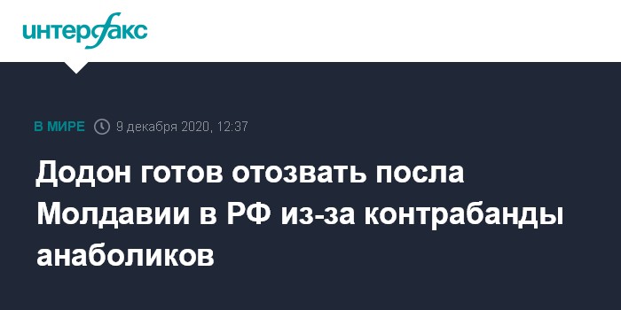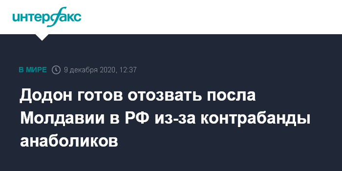 Москва. 9 декабря. INTERFAX.RU - Покидающий свой пост президент Молдавии Игорь Додон считает, что посол Молдавии в России Андрей Негуца должен быть отозван, если подтвердится информация о контрабанде анаболиков из Кишинева в Москву.