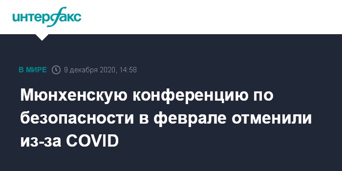 "В следующем году продолжающаяся пандемия не даст нам возможности провести, как планировалось, Мюнхенскую конференцию по безопасности 19-21 февраля", - сказано в заявлении.