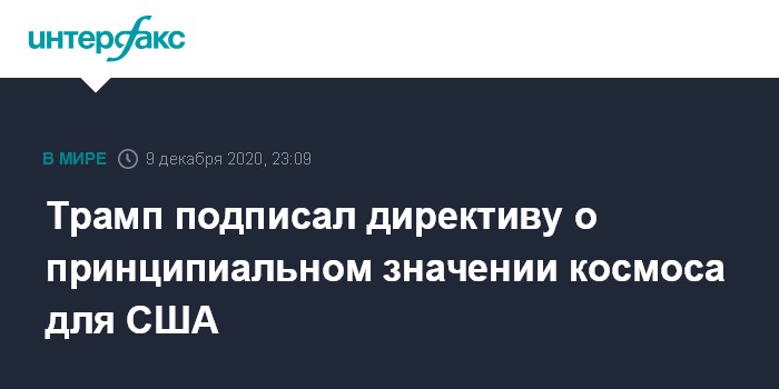 Москва. 9 декабря. INTERFAX.RU - Президент США Дональд Трамп подписал директиву, которая утверждает приоритет национальных интересов в космической сфере и первостепенное значение космоса для страны.