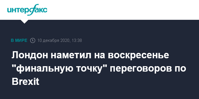 Ранее британский премьер Борис Джонсон и председатель Еврокомиссии Урсула фон дер Ляйен договорились до ближайшего воскресенья определить, есть ли шансы заключить соглашение об отношениях сторон после Brexit. За ужином в среду, 9 декабря, они три часа обсуждали ключевые разногласия сторон, включая равноправную конкуренцию и права на рыболовство.