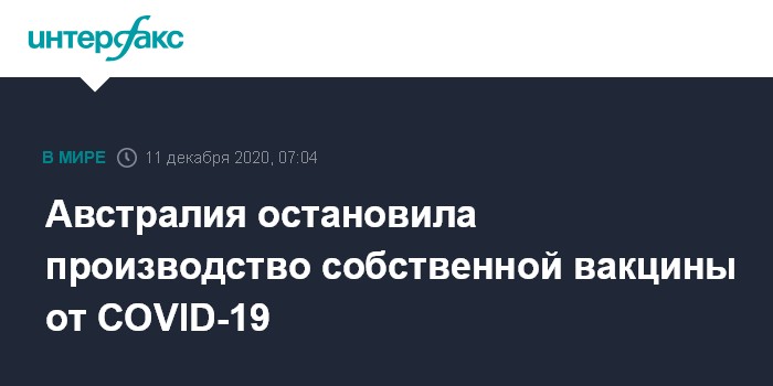Москва. 11 декабря. INTERFAX.RU - В Австралии принято решение об остановке производства вакцины от коронавируса, разработанной Университетом Квинсленда (UQ) и производителем вакцин CSL, сообщили разработчики препарата.