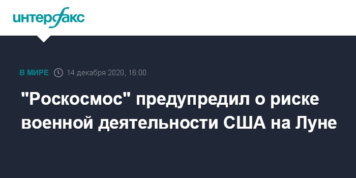 Москва. 14 декабря. INTERFAX.RU - В "Роскосмосе" опасаются, что продвигаемые Соединенными Штатами "Соглашения Артемиды" позволят Вашингтону осуществлять военную деятельность на Луне, сообщил заместитель гендиректора "Роскосмоса" по международному сотрудничеству Сергей Савельев.