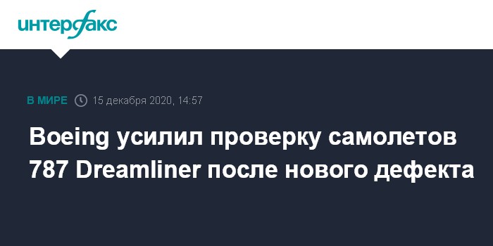 Москва. 15 декабря. INTERFAX.RU - Американский авиастроительный концерн Boeing расширил проверки новых самолетов 787 Dreamliner после обнаружения еще одного производственного дефекта. Об этом сообщает The Wall Street Journal со ссылкой на представителей отрасли и правительства.
