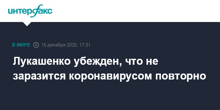Москва. 15 декабря. INTERFAX.RU - Президент Белоруссии Александр Лукашенко выразил уверенность, что не заразится повторно коронавирусной инфекцией.
