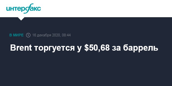К 8:20 по московскому времени февральские фьючерсы на Brent дешевели на лондонской бирже ICE Futures на $0,08 (0,16%), до $50,68 за баррель. 16 декабря Brent подорожала на $0,47 (0,9%) - до $50,76 за баррель, максимума с 4 марта.