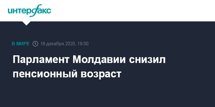 Москва. 16 декабря. INTERFAX.RU - Парламент Молдавии аннулировал пенсионную реформу, снизив возраст выхода на пенсию, как это было до декабря 2016 года.