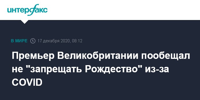 Москва. 17 декабря. INTERFAX.RU - Премьер-министр Великобритании Борис Джонсон заявил, что не собирается "отменять Рождество", но призвал британцев справлять его скромно, сообщает телеканал Sky News.