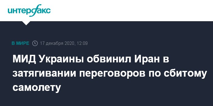 Москва. 17 декабря. INTERFAX.RU - Иранская сторона на переговорах по сбитому самолету авиакомпании Международные авиалинии Украины (МАУ) возле Тегерана сознательно тянет время, заявил заместитель министра иностранных дел Украины Евгений Енин.