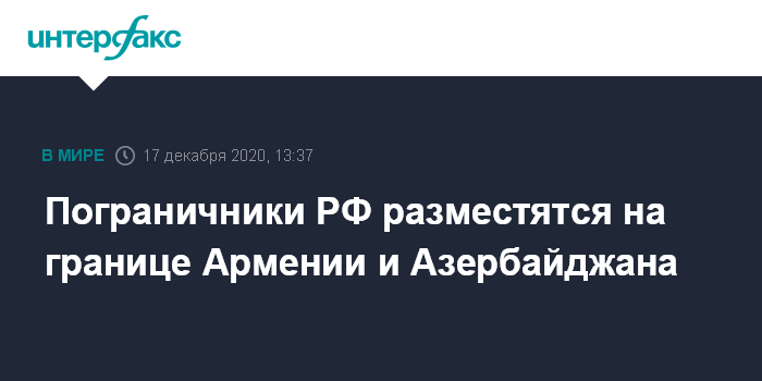 Москва. 17 декабря. INTERFAX.RU - Российские пограничники будут размещены на некоторых участках армяно-азербайджанской границы в Сюникской области на юге Армении, сообщает пресс-служба Минобороны Армении.