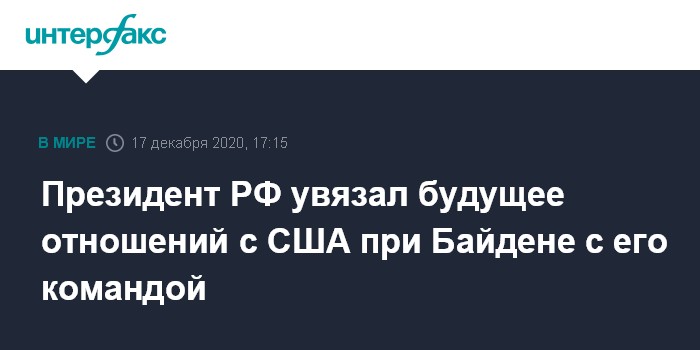 Президент РФ увязал будущее отношений с США при Байдене с его командой