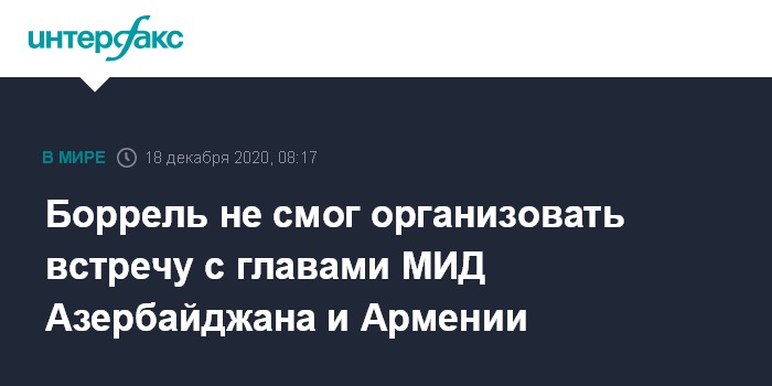 Москва. 18 декабря. INTERFAX.RU - Высокий представитель ЕС по иностранным делам Жозеп Боррель сообщил в четверг, что предпринимал попытку организовать трехстороннюю встречу с главами МИД Азербайджана и Армении, но у него ничего не получилось.