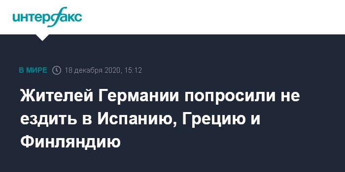 Москва. 18 декабря. INTERFAX.RU - Министерство иностранных дел Германии в пятницу опубликовало расширенные предупреждения насчет поездок в Испанию, Грецию и Финляндию в связи с распространением коронавируса.