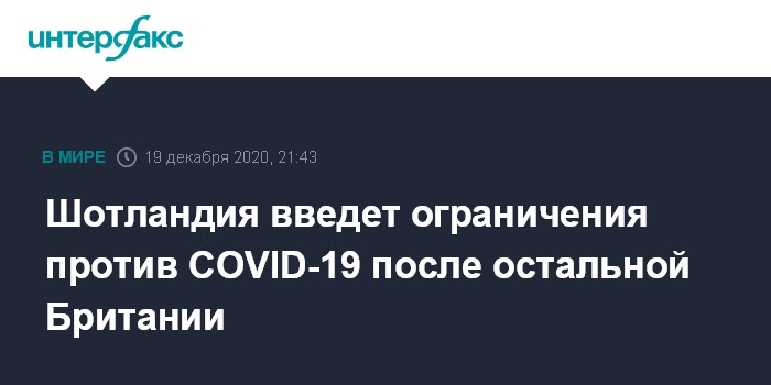 Шотландия присоединится к ограничениям после Уэльса и Англии, где усиленные меры начнут действовать уже 20 декабря.