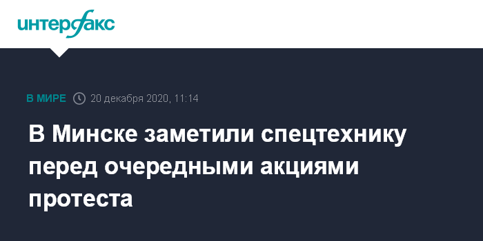 Москва. 20 декабря. INTERFAX.RU - Очередные несанкционированные властями акции протеста начинаются в столице Белоруссии, традиционно в Минск стягивается специальная техника силовиков.