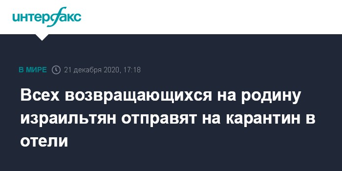 Москва. 21 декабря. INTERFAX.RU - Все израильтяне, возвращающиеся на родину из-за рубежа, со среды будут обязаны провести две недели на карантине в отеле, сообщает The Times of Israel.