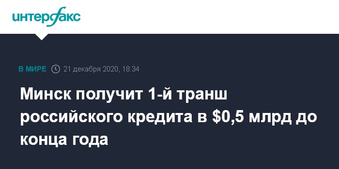 Минск получит 1-й транш российского кредита в $0,5 млрд до конца года