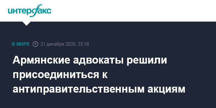 Москва. 21 декабря. INTERFAX.RU - Палата адвокатов Армении выступила за отставку премьер-министра Армении Никола Пашиняна, назвав его "источником угрозы государственности".