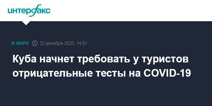 В распоряжении "Интерфакса" также есть протокол министерства здравоохранения страны от 20 декабря, где сообщается о скором введении тестов для туристов, которые нужно сделать до прибытия на Кубу.