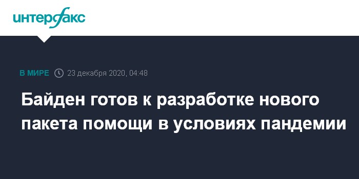 Москва. 23 декабря. INTERFAX.RU - Избранный президент США Джо Байден заявил, что в следующем году его администрация разработает еще одни пакет помощи стимулирования экономики и помощи населению в условиях пандемии коронавируса.